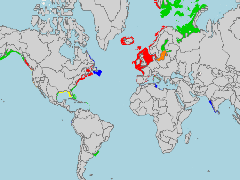 The map shows the number of reported harmful algae blooms for the period 1980 to 2015. The data are based on the harmful algae event database (HAEDAT, http://haedat.iode.org) and are displayed by Coastal Segmentation and related CATchments (COSCAT).